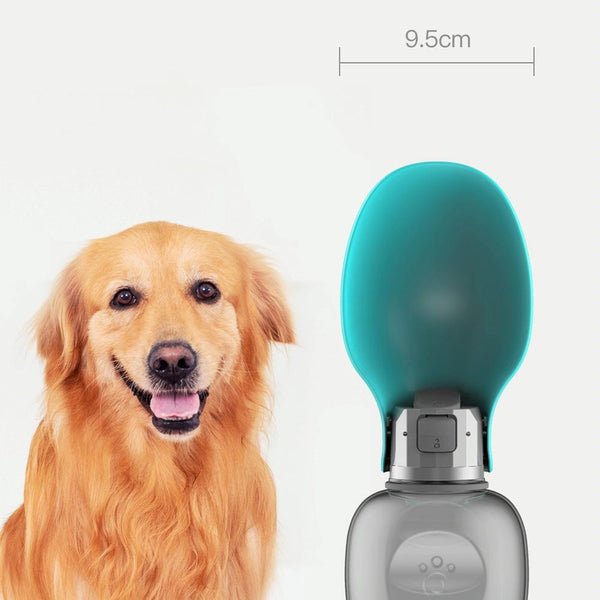 Keep your furry friend hydrated on the go with this portable, leaf-shaped water bottle. The one-touch button makes single-handed operation a breeze, allowing you to quickly dispense and store unused water. Its generous 800ml capacity ensures your pet stays refreshed throughout walks, hikes, and adventures. Designed with a 9.5cm wide bowl, it's suitable for most dog breeds. Conveniently fits standard car cup holders and includes a handy strap for carrying on your wrist or attaching to a backpack. Made from food-grade ABS, TPR, and HDPE materials for safety and durability. Dimensions: 9.2 x 9.2 x 23.8 cm. Weight: 170g.