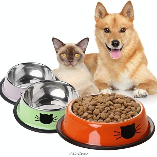 Keep mealtimes tidy and wobble-free with this Non-Slip Pet Stainless Steel Painted Cat Food Feeder in a vibrant green. Crafted from durable, food-safe stainless steel, this 11x15.5x4cm bowl features a cute painted design and a non-slip rubber ring base to prevent spills and keep the feeder securely in place. Perfect for cats of all sizes, this bowl offers a hygienic and stylish dining experience.