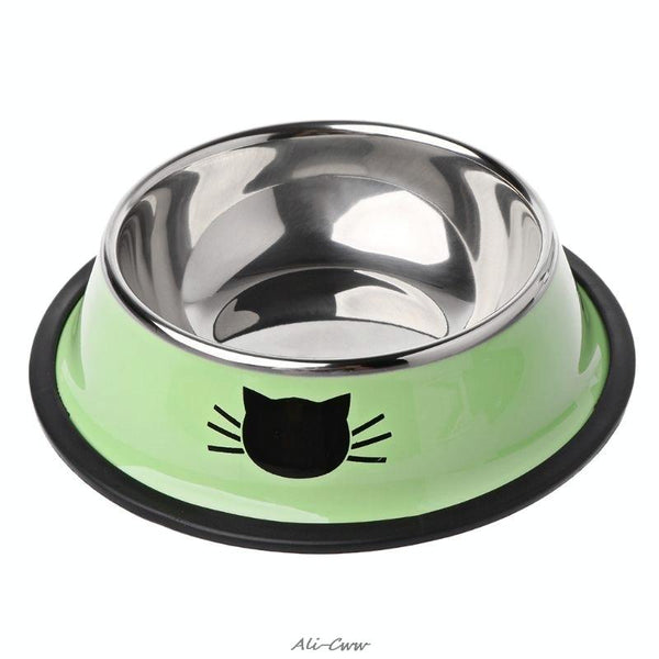 Non-Slip Green Cat Bowl - Stainless Steel - 11x15.5cm