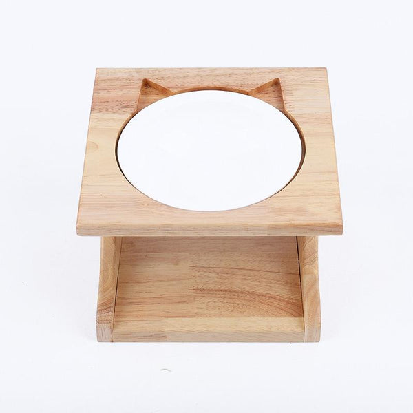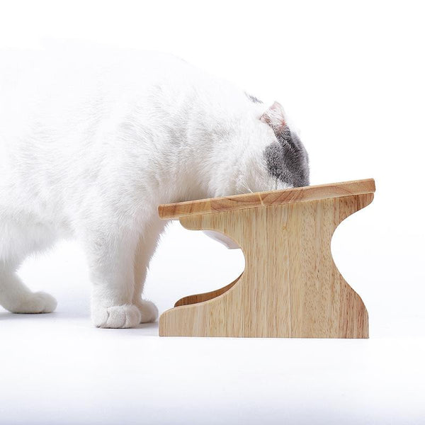 Oak Cat Bowl Rack | Raised Single Ceramic Bowl | Anti-Choking
