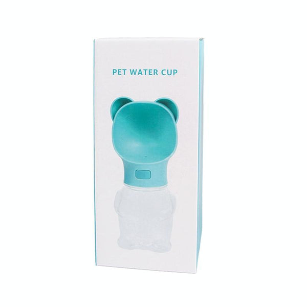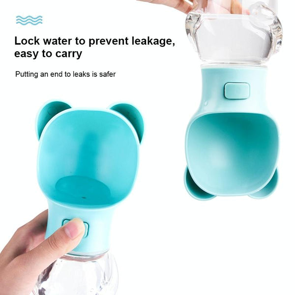 Portable Pet Water Bottle 500ml, Pink Bear Design - Dog & Cat Travel Bowl