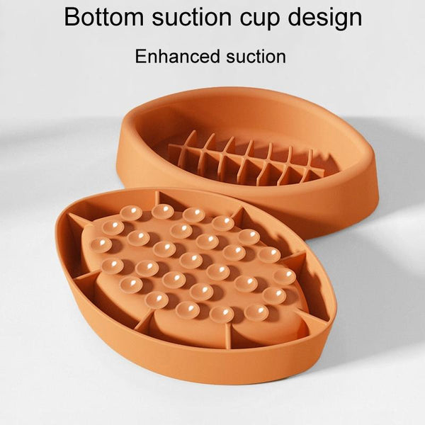 Silicone Licking Bowl (Orange) for Cats & Dogs - Slow Feeder with Suction