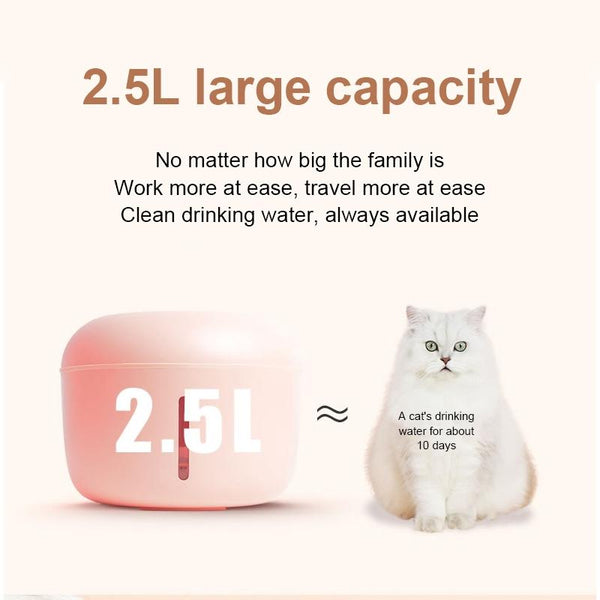 Automatic Pet Water Fountain, 2.5L, White - Cat & Dog Filter Dispenser
