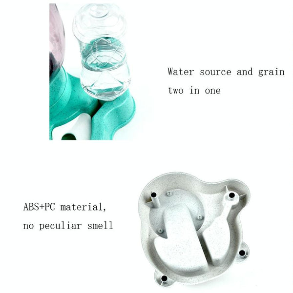 Keep your furry friend fed and watered with this automatic pet feeder and waterer in a refreshing mint green. This convenient 2-in-1 design combines a large-capacity grain dispenser and automatic water bottle, perfect for cats and small dogs. Crafted from durable ABS and PC, this feeder features a smooth-sliding, large-calibre grain dispenser for easy access to kibble or dry food. The automatic water bottle uses a siphon principle with a spring-loaded valve to maintain a consistent water level, preventing spills and leaks. Refilling is a breeze thanks to the removable top cover for food and the easy-to-detach water bottle. Cleaning is simple too, as the components are easily removable. Measuring 24x31x20cm and weighing just 411g, this compact feeder is ideal for any home. Enjoy peace of mind knowing your pet is always well-nourished and hydrated.