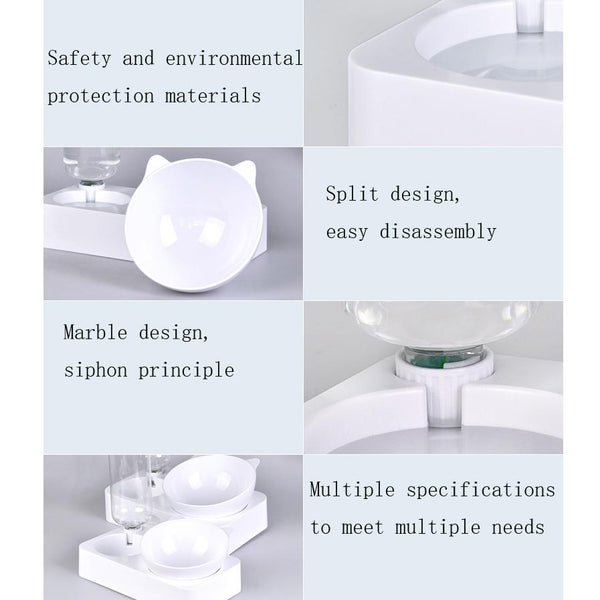 Prevent spills and keep your pet hydrated with this anti-tipping automatic drinking water and feeding bowl. The innovative siphon design ensures a constant supply of fresh water, while the 600ml water bottle capacity reduces refills. The raised double bowl design promotes healthy eating posture and holds approximately 200g of dry food (small size). Easy to clean thanks to its split design, this durable PP bowl measures 25x14x25cm and weighs just 266g. Perfect for small dogs and cats.