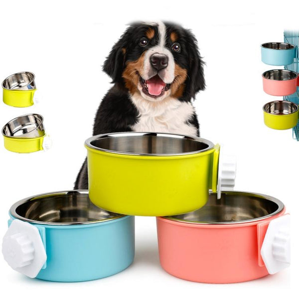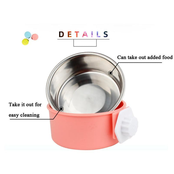 Small Hanging Pet Bowl, Stainless Steel, Random Colour