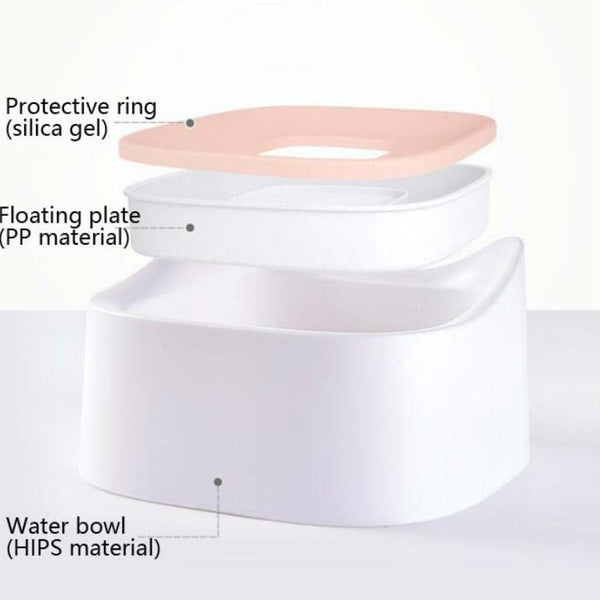 Keywords: pet bowl, floating bowl, cat bowl, dog bowl, spill-proof, splash-proof, no wet mouth, dust-proof, 1400ml, cherry blossom pink, easy clean, HIPS, PP, silicone, small dog, cat, pet drinker, pet supplies, pet accessories
