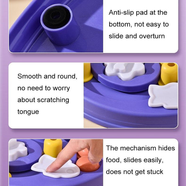 Challenge your dog's mind and appetite with this interactive slow food maze toy. Made from durable, bite-resistant, and non-toxic PP material, this puzzle toy is designed for long-lasting play. Its tiered difficulty levels keep your dog engaged, promoting problem-solving skills and preventing boredom. The secure, reinforced screws ensure the food container stays in place, while smooth, rounded edges protect your pet's tongue. Hidden treats release enticing aromas, encouraging your dog to explore and forage. The sliding toy covers add an extra layer of challenge, and the non-slip base prevents spills and keeps the toy stable during enthusiastic play. Weighing just 0.6kg and measuring 29.5 x 29.5 x 5cm, this blue puzzle toy is perfect for slowing down mealtimes, developing intelligence, and providing hours of stimulating fun.