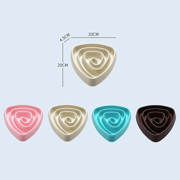 Prevent choking and promote healthy eating habits with this Pet Plastic Triangle Anti-Choke Bowl. Made from durable, easy-to-clean PP plastic, this innovative slow feeder bowl features a triangular spiral design that encourages slower eating, reducing the risk of choking and indigestion for your beloved dog. The smooth inner wall ensures effortless cleaning, while the non-slip base provides stability during mealtimes. Perfect for small dogs, this beige bowl measures approximately 20x4.5cm and weighs just 30g. Invest in your pet's wellbeing with this practical and effective slow feeding solution.