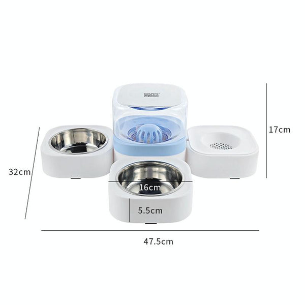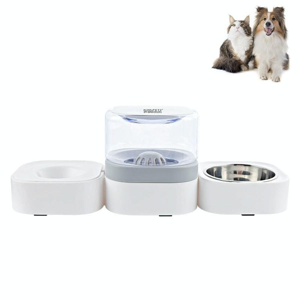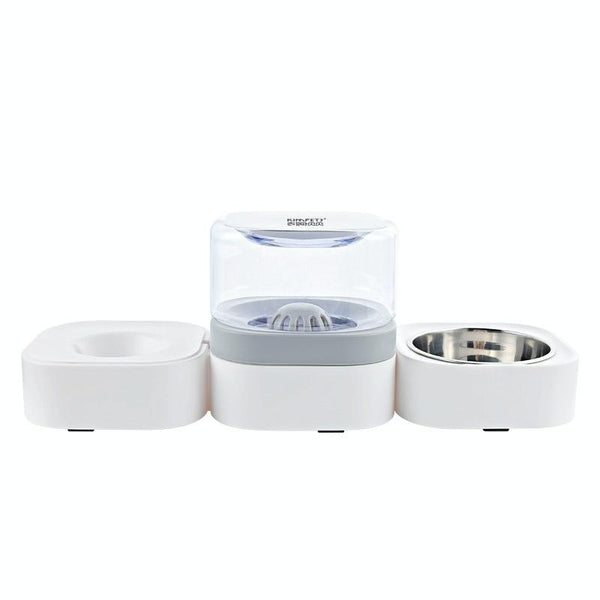 Automatic Pet Water Fountain with Food Bowl, Grey, 1.8L
