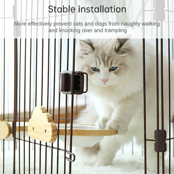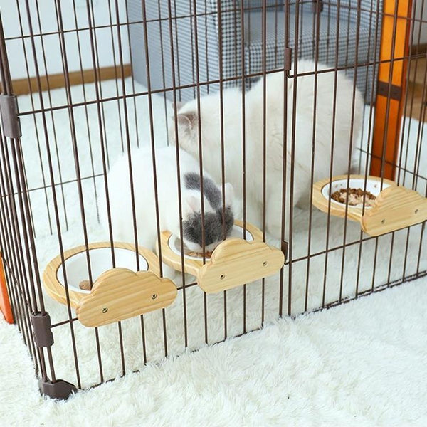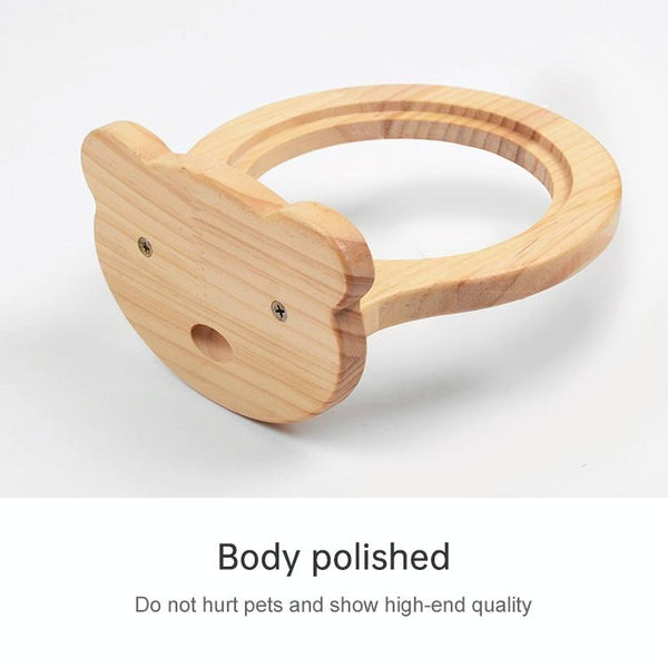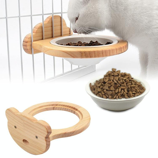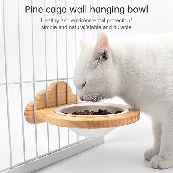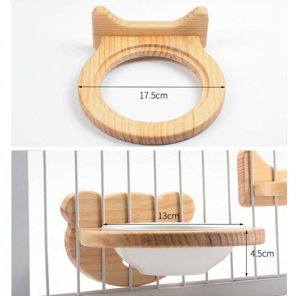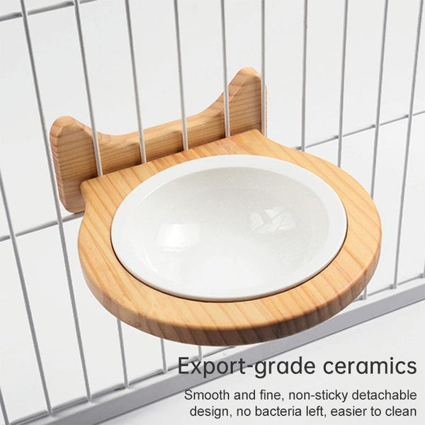 Adjustable Hanging Pet Bowl - Bear Design, Porcelain, Pine Wood