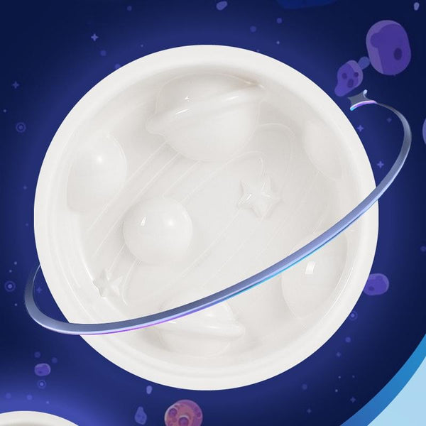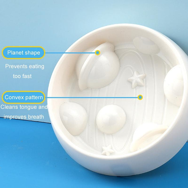 Help your cat or dog eat healthier with the Planet Shape Pets Anti-Choking Slow Eating Bowl. This innovative, spill-resistant pet bowl features a unique planet design with raised bumps to slow down eating, preventing choking and improving digestion. The textured surface also helps clean your pet's tongue and freshen their breath. Made from durable, easy-to-clean PP material, this white slow feeder bowl has a non-slip base for stability and a raised rim to contain spills. Rounded corners ensure safe and comfortable mealtimes. Suitable for both cats and dogs. Measures 20 x 20 x 5cm and weighs 120g.
