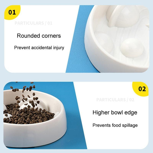 Slow Feeder Dog & Cat Bowl, Anti-Choking Pet Bowl, White