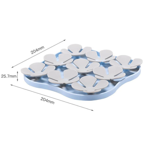 Keep mealtimes tidy and improve your cat or dog's digestion with this Portable Silicone Licking Mat in peacock blue and pink. Made from durable, food-grade silicone, this mat features a unique textured surface and raised border to promote slower eating, reducing the risk of choking and bloat. The strong suction cups on the base prevent spills and keep the mat securely in place, while the flexible, foldable design makes it easy to clean and store. Suitable for both wet and dry food, this lick mat is a great way to entertain your pet and encourage natural foraging behaviour. Dimensions: 204 x 204 x 25.7mm. Weight: approximately 243g.