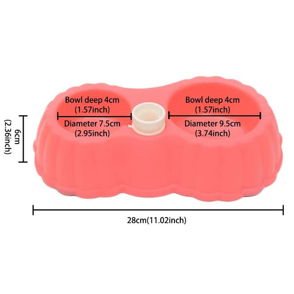 Keep your furry friend fed and watered with this adorable pumpkin-shaped double pet bowl. Crafted from durable, eco-friendly PP material, this feeder is non-toxic and safe for both cats and small to medium-sized dogs. The gravity-fed water dispenser is compatible with most standard bottles (not included), ensuring a constant supply of fresh water. The separate food bowl ensures meals are kept tidy. Non-slip rubber feet on the base prevent spills and keep the bowls securely in place, even for enthusiastic eaters. This convenient feeder makes mealtimes easier and more enjoyable for both you and your pet. Food bowl diameter: 9.5cm, water bowl diameter: 7.5cm, bowl depth: 6cm. Available in a charming magenta colour. Ideal for kittens, puppies, cats, and small dogs.