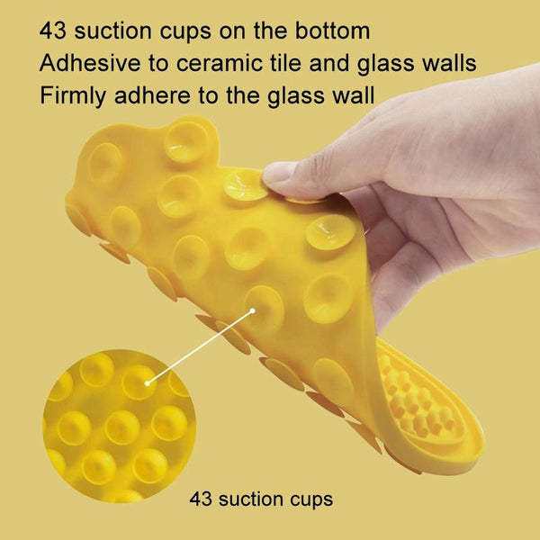 Soothe and entertain your furry friend with this carrot-shaped silicone pet licking mat. Made from durable, food-grade silicone, this lick mat is designed to slow down feeding, promoting healthier digestion. Its textured surface and slow food columns help reduce gulping and bloating while providing mental stimulation. Featuring 43 strong suction cups, the mat securely adheres to smooth surfaces like tiles and glass, preventing spills and messes during mealtimes, training sessions, or even bath time. Suitable for both cats and dogs, this versatile mat can be used with a variety of treats, from peanut butter and yoghurt to pet food and snacks. Approximate size: 22.5 x 18cm.