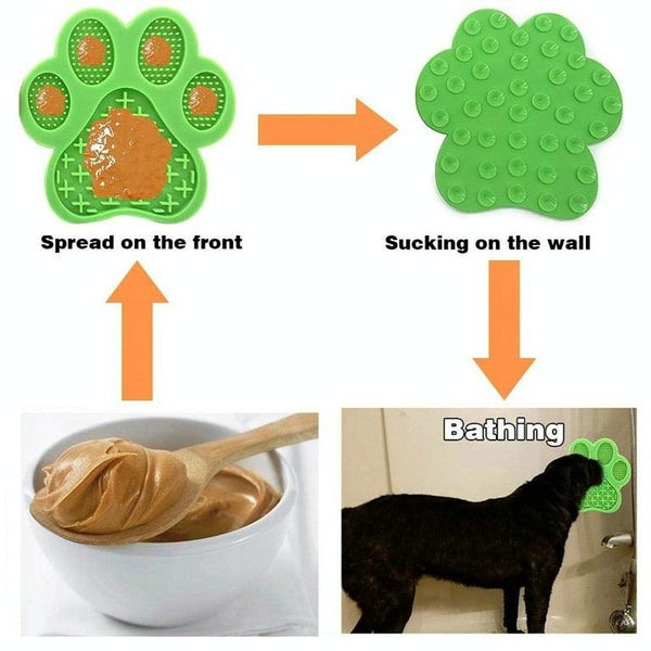 Soothe and distract your dog with this lickable silicone pet pad in calming blue. Made from BPA-free, food-grade silicone, this slow feeder mat is perfect for calming anxious pets during grooming, vet visits, or bath time. Simply spread your dog's favourite soft treat (peanut butter, yoghurt, etc.) across the textured surface and let them enjoy. The strong suction cup base adheres firmly to any smooth surface, preventing spills and messes. Suitable for use with wet or dry food. Dishwasher safe for easy cleaning. Heat resistant from -40°C to 240°C. Measures 180mm x 180mm x 12mm and weighs 127g.