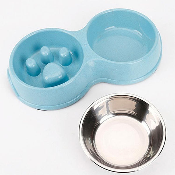 Anti-Choke Slow Feed Cat Bowl, Stainless Steel, White