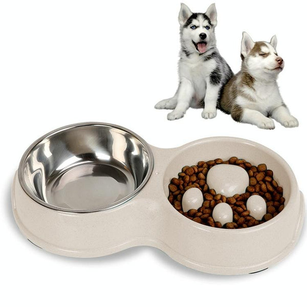Prevent choking and promote healthy eating habits for your cat with this Slow Food Anti-Choke Double Pet Bowl. Crafted from durable stainless steel and eco-friendly wheat straw, this elevated bowl features a unique anti-choke design with a 13.5cm diameter, encouraging slower eating and reducing the risk of vomiting and indigestion. The non-slip base ensures stability during mealtimes, while the easy-to-clean design simplifies maintenance. This stylish white bowl measures 32 x 5 cm and includes two stainless steel bowls with a 14cm diameter. Suitable for both cats and small dogs.
