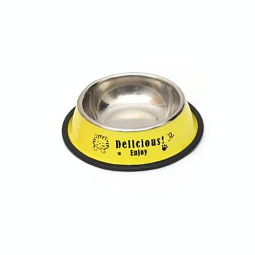 Upgrade your pet's mealtimes with this vibrant yellow stainless steel bowl. Durable and safe, it's perfect for small to medium dogs, cats, and kittens. The colourful paint-printed design adds a touch of fun, while the non-slip rubber base ensures stability, preventing spills and skids. With a 13cm bowl diameter and a wider 17.7cm base, this bowl offers ample space for food and water. Made from high-quality, non-toxic stainless steel, this bowl is both practical and stylish, promising years of happy dining for your furry friend.