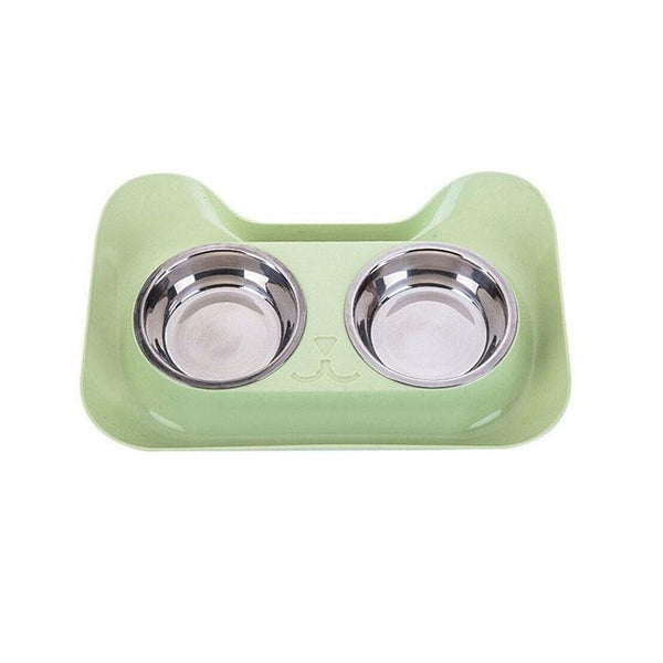 Stainless Steel Double Pet Bowl Green - Leakproof Dog & Cat Food Water Bowl