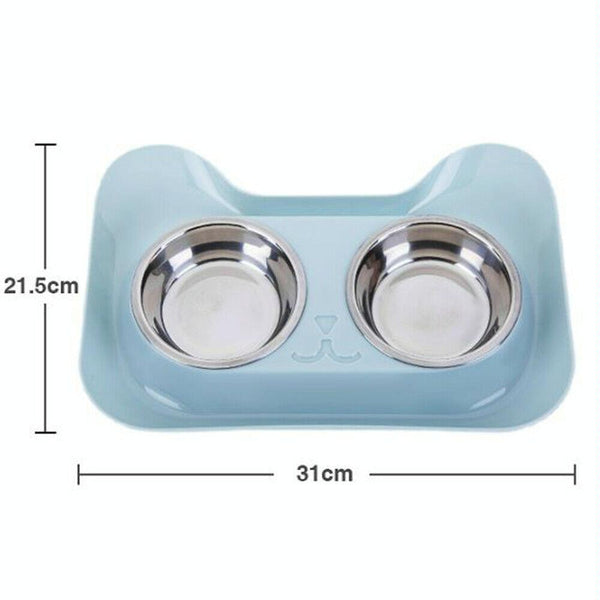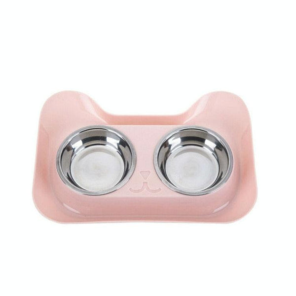 Pink Double Pet Bowl - Stainless Steel, Leakproof, Cat & Dog