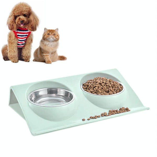 Elevated Stainless Steel Pet Bowl, Green, Large, Anti-Skid