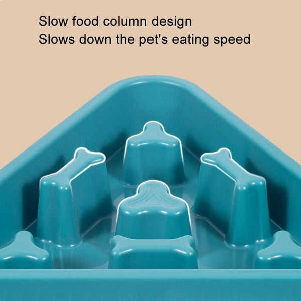 Slow Feed Dog & Cat Bowl - Blue - Triangle Bone Shape
