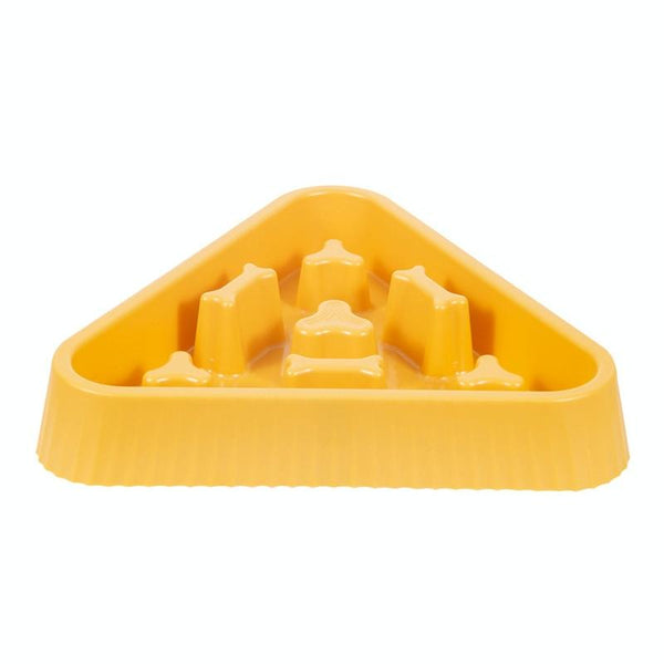 Slow Feed Dog & Cat Bowl, Yellow, Triangle Bone Shaped
