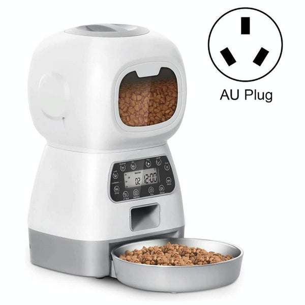 Keep your furry friend fed and happy with the WiFi enabled Elf Pet Feeder. This automatic pet feeder boasts a generous 3.5L capacity, suitable for dry food between 5mm and 15mm. Control feeding times and portions remotely via the convenient app, scheduling up to 4 meals a day with a maximum of 20 servings per meal (approximately 5g per serving). A built-in 10-second voice recorder allows you to call your pet for mealtimes, playing automatically before each scheduled feed. The Elf Pet Feeder features a detachable metal food pan for easy cleaning and a smart chip with motor jam detection for added safety. Powered by either a DC5V/1A adapter (included AU power supply) via USB2.0 or 3 x AA batteries (not included), the feeder prioritises adapter power and includes a memory function to retain feeding schedules during power outages. Search terms: automatic pet feeder, wifi pet feeder, smart pet feeder, app controlled pet feeder, 3.5l pet feeder, pet feeder with timer, automatic cat feeder, automatic dog feeder, elf pet feeder, pet feeder australia.