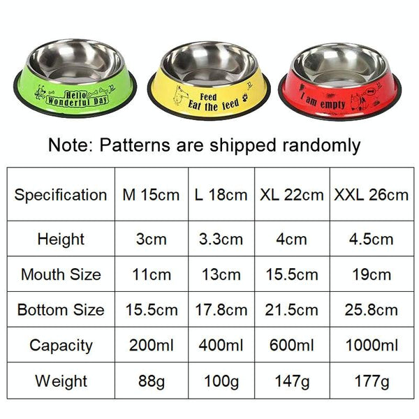 This XXL 26cm anti-tip stainless steel pet bowl provides a secure and comfortable dining experience for your cat or dog. Crafted from durable, bite-resistant stainless steel, this robust bowl resists tipping and sliding, ensuring mealtimes remain mess-free. The smooth, easy-clean surface prevents stains and bacteria build-up, promoting excellent hygiene. Finished with a colourful, wear-resistant baked paint design (patterns may vary), this large capacity bowl is perfect for even the hungriest of pets. Ideal for both cats and dogs.