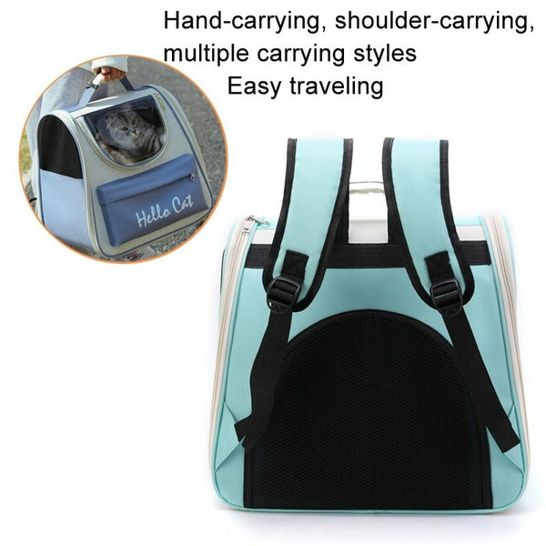 Enjoy multiple carrying options with the comfortable handle and adjustable shoulder straps. The anti-escape buckle provides added peace of mind, and multiple pockets offer convenient storage for treats, toys, and other essentials. This lightweight and portable cat backpack is perfect for vet visits, hikes, or simply a stroll in the park. Easy to clean and featuring a smooth metal zipper, this backpack is as practical as it is stylish.
