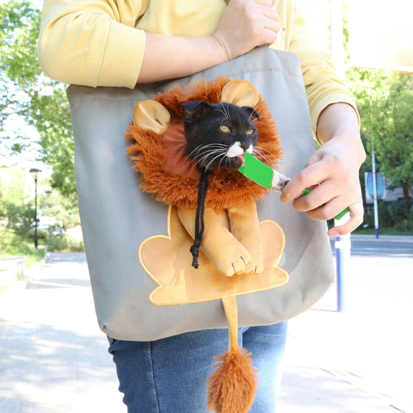 Transport your furry friend in style and comfort with this expandable canvas cat carrier bag, shaped like an adorable lion. Crafted from thick, high-quality cotton canvas, this durable pet handbag offers a soft and secure space for your small dog or cat. The unique 3D lion patch adds a touch of character, while the adjustable buckle allows you to customise the opening circumference up to 37cm, ensuring a snug fit. A secure zip closure keeps your pet safely contained, and the open-top design allows for interaction and reduces travel stress. Choose the large size (40 x 44cm, approximately 280g) in a sophisticated dark grey. Carry it on your shoulder or by hand – perfect for vet visits, travel, or everyday adventures.