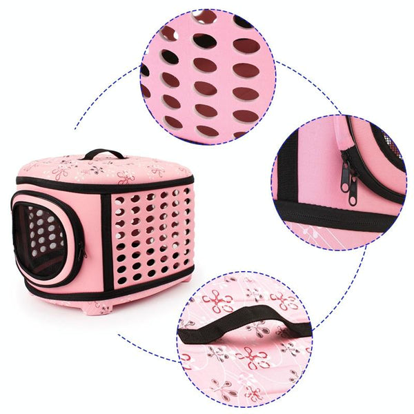 Pink Folding Pet Carrier Bag | EVA Portable Tote | Cat & Small Dog