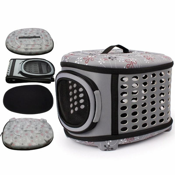 Portable, foldable pet carrier for comfortable travel.