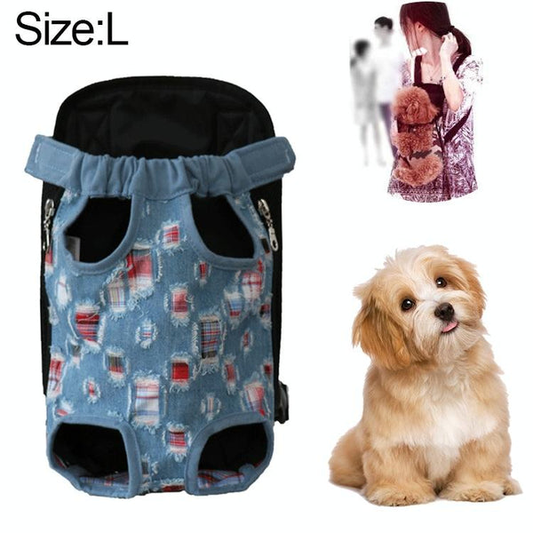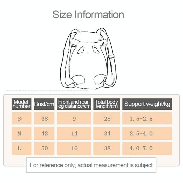 Securely carry your furry friend on all your adventures with our Size L Front Pet Carrier Dog Backpack Bag. This comfortable and breathable carrier features a built-in safety buckle to attach to your dog's collar, ensuring their safety while you travel. The clever tail-out design allows for natural movement and comfort, while the mesh panels provide ample ventilation to prevent overheating. The convenient strap design makes it easy to carry your dog while shopping, eating out, or simply enjoying a stroll. Perfect for small to medium-sized dogs, this front carrier allows you to keep your pet close and comfortable wherever you go.