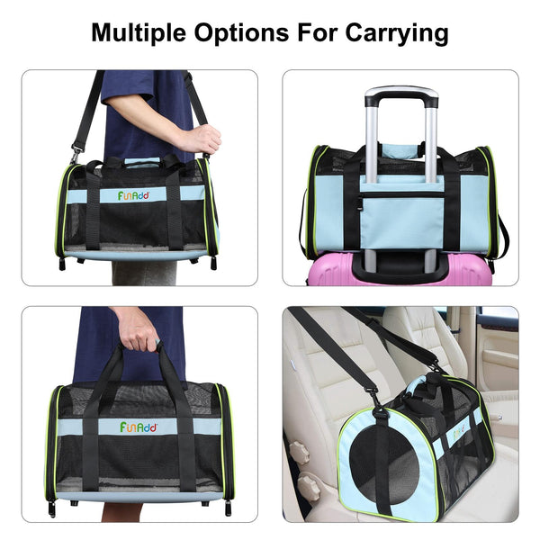 FUNADD Foldable Pet Carrier Bag, Blue - Small Dog/Cat Tote