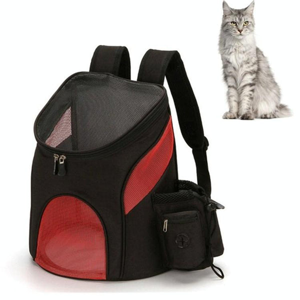 Foldable Pet Carrier Backpack, Small, Black/Red - Cats & Dogs to 3kg
