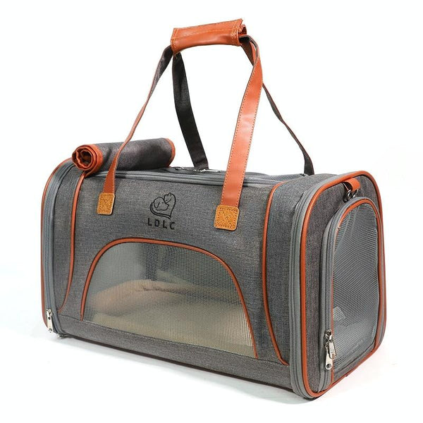LDLC QS-012 Pet Carrier Bag, Grey, Breathable, Foldable, for Small Pets (6kg)