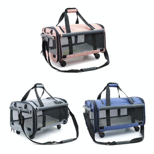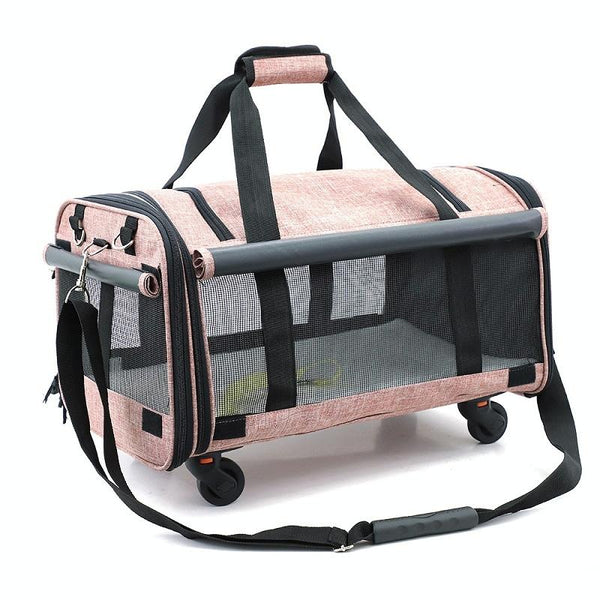 LDLC QS-019 Rolling Pet Carrier Bag, M, Light Pink (4.5kg Max)