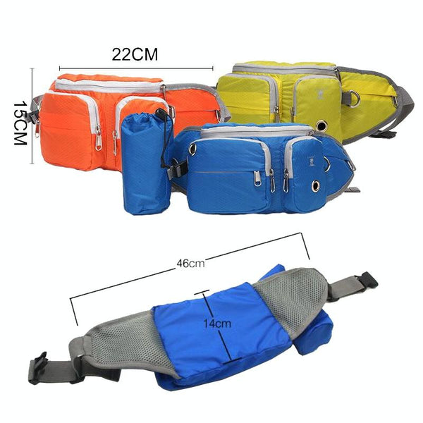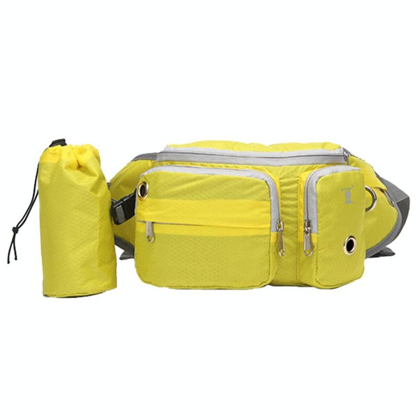 Hands-free dog walking just got easier with the Lovoyager Pet Training Waist Bag in vibrant yellow. This durable, nylon dog treat pouch features a built-in snack bag and water cup holder, keeping treats and refreshments readily available. A convenient headphone jack allows you to enjoy your music while out and about, and the integrated poop bag dispenser ensures easy clean-up. The breathable mesh panels with soft pearl cotton padding provide comfortable wear, while the adjustable buckle belt (55-96cm) fits most waist sizes. This scratch-resistant and easy-to-clean treat bag measures 46x14cm, making it the perfect companion for dog training, walks, and outdoor adventures.