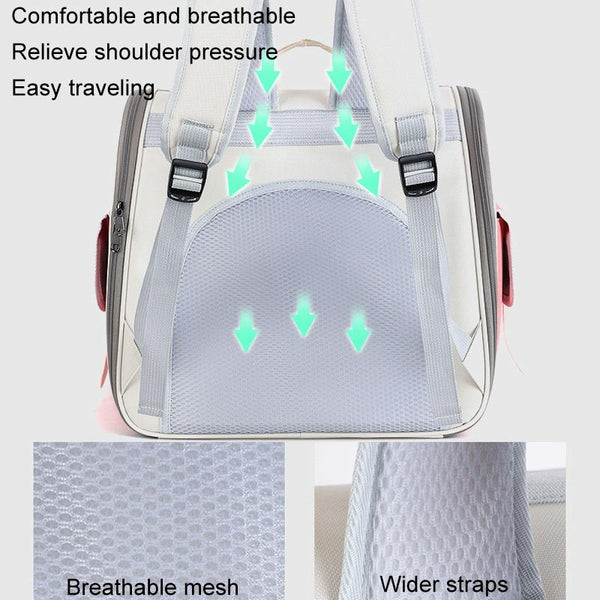 Travel with your feline friend in comfort and style with this large capacity, breathable cat backpack (Model 7 Yellow). Perfect for vet visits, hikes, or everyday adventures, this carrier features multiple ventilation points to keep your cat cool and comfortable. The widened and thickened hand straps and adjustable shoulder straps distribute weight evenly, reducing strain and making it easy to carry. Durable polyester construction with reinforced stitching and metal rivet details ensures long-lasting use. A two-way metal zipper allows for easy access, while a convenient front pocket provides storage for treats and essentials. The spacious interior includes a warm, padded fleece insert for added comfort and insulation. Suitable for cats and small dogs up to 7.5kg. Dimensions: 31 x 35 x 23cm. Weight: 950g.