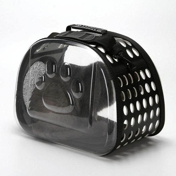 Foldable Transparent Pet Carrier Bag, Small Dog, Breathable, Black (S)