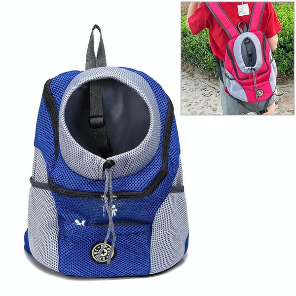 Comfortable and breathable pet carrier backpack perfect for taking your small dog or cat on outdoor adventures. Crafted from durable nylon mesh, this front-facing carrier bag provides excellent ventilation to keep your furry friend cool and comfortable. The double shoulder straps distribute weight evenly for a comfortable carrying experience, even on longer journeys. Available in size Small (Blue), suitable for pets weighing under 25kg. Choose this stylish and practical pet carrier for walks, hikes, bike rides, or simply a trip to the vet. Also available in Red, Green, Rose, and Yellow, and in a larger size (L). Dimensions (Size S): 30x34x16 cm. Secure and comfortable for your pet, convenient for you.