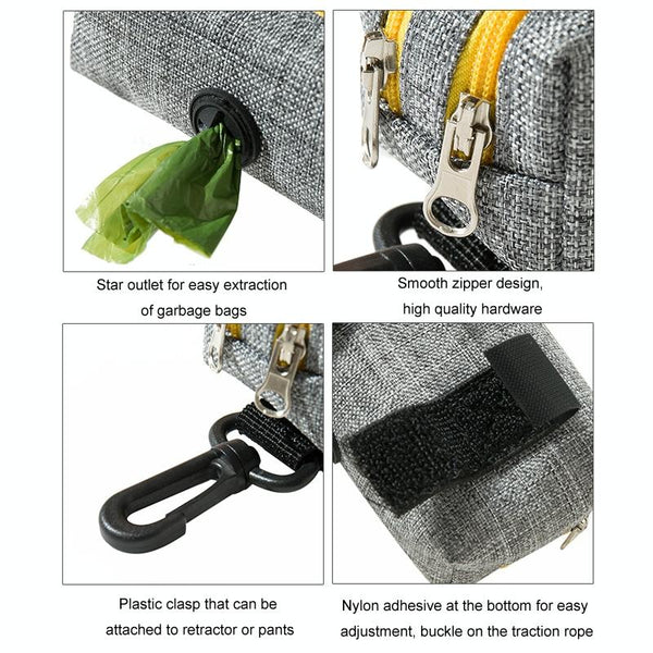Search terms: dog poop bag holder, dog waste bag dispenser, poop bag carrier, dog walking accessories, dog lead accessories, pet waste management, portable poop bag dispenser, grey green poop bag holder, Oxford cloth poop bag holder.