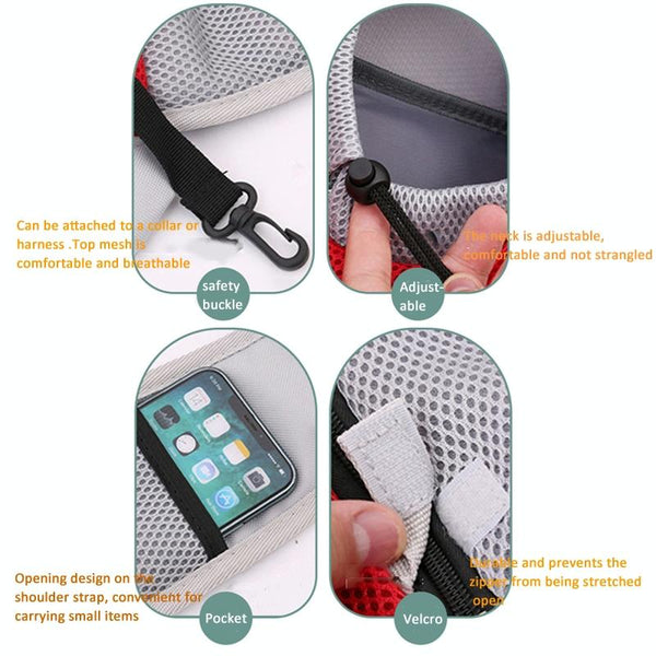 Travel in comfort and style with this breathable pet carrier bag, perfect for small cats and dogs up to 7.5kg. The widened shoulder strap and lightweight design (just 230g) make it easy to carry your furry friend, while the large mesh panels ensure excellent ventilation. A retractable neck opening allows for comfortable breathing, and a safety buckle provides added security. Convenient pockets on the shoulder strap hold small essentials, and the easy-open design simplifies putting your pet in and out. Crafted from durable Oxford cloth and breathable mesh, this small red carrier measures 40 x 22 x 10cm. Upgrade your pet's travel experience today!