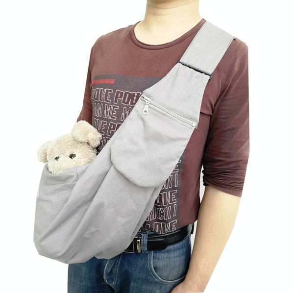 Grey Canvas Pet Carrier Sling Bag - Adjustable, Holds Pets Up To 5kg
