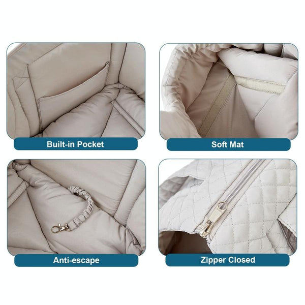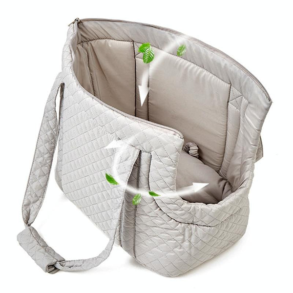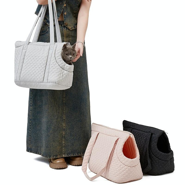 Cosy up your cat or small dog in this stylish and practical Pet Handbag, perfect for autumn and winter outings. Crafted from durable pongee fabric, this carrier offers a soft, comfortable, and breathable space for pets up to 5kg (or 7.5kg for the large size). The fully enclosed design promotes deep sleep while an internal patch pocket keeps treats and essentials handy. A removable, nylon-adhesive soft pad ensures maximum comfort, and the secure SBS all-metal automatic locking zipper prevents escapes. An additional anti-escape elastic rope with a metal hook adds extra security. The adjustable shoulder strap (78cm long) makes carrying your furry friend effortless. Choose from two sizes: standard (44x30x23cm, 400g) or large (50x27x30cm, 1000g) in a beautiful light pink colour. Keep your pet warm and secure on all your adventures.
