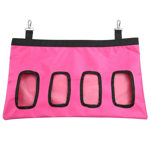 Keep hay fresh, dry, and easily accessible for your small pet with this durable Hanging Hay Storage Bag. Made from waterproof 600D Oxford cloth, this feeder helps prevent hay wastage and keeps your pet's hutch tidy. Suitable for rabbits, guinea pigs, chinchillas, hamsters, and other small animals. The bag features two metal hooks for secure cage attachment and adjustable nylon straps for a perfect fit. Choose from two sizes: two-hole (34x24x1cm) or four-hole (45x27x1cm) to suit your pet's needs. Easy to clean and fill, this hay bag is a must-have for any small pet owner.