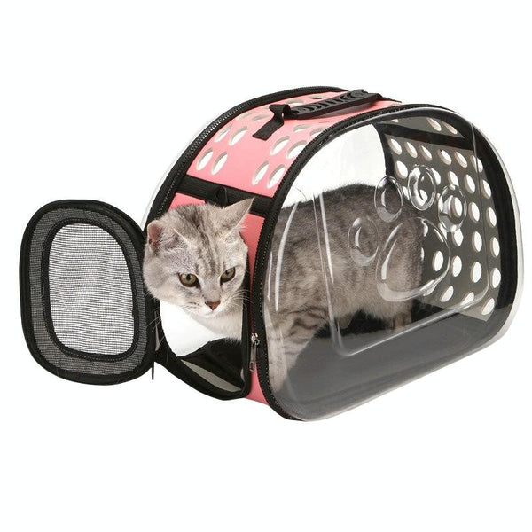 Give your furry friend a first-class travel experience with this Pet Transparent Space Capsule Outing Package in Small (Pink). This stylish and comfortable pet carrier offers a 360-degree panoramic view, allowing your cat or small dog (up to 2.5kg) to enjoy the sights while staying safe and secure. The three-sided ventilation holes ensure optimal airflow, keeping your pet cool and comfortable during travels. The convenient zipper side door allows for easy entry and exit, while the non-slip base provides stability and isolates from dust. Crafted from durable PVC with a high-quality metal zipper, this carrier is built to last. When not in use, it folds flat for space-saving storage. Choose this pink space capsule carrier for stylish and comfortable pet transport.